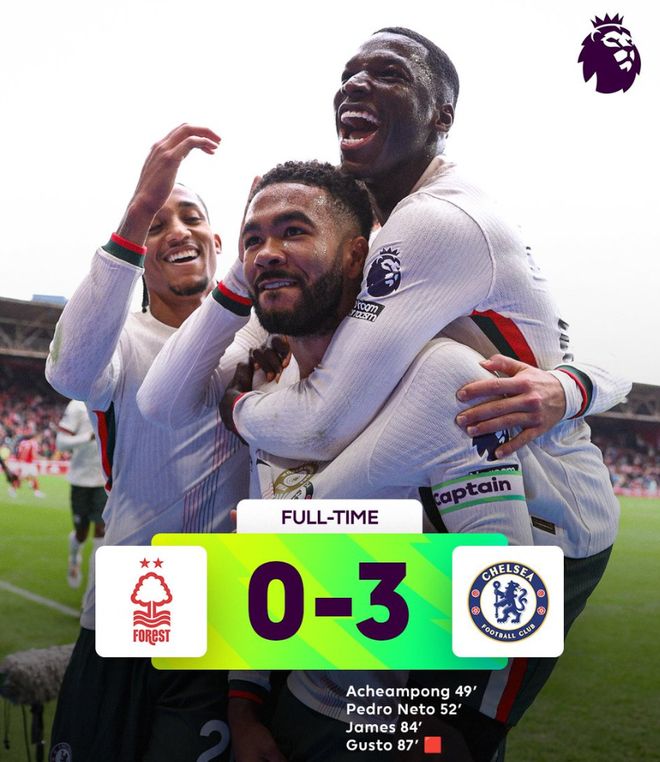 雷速体育10月18日讯 在今晚刚结束的英超第八轮的一场比赛中,诺丁汉森林主场0-3不敌切尔西,波斯特科格鲁依然没有迎来执教森林的首胜。本场比赛,为蓝军进球的分别是内托、小将阿昌庞以及里斯·詹姆斯。