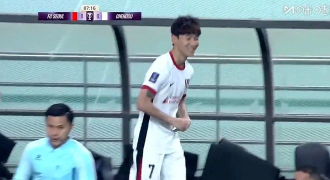 亚冠精英赛第四轮,成都蓉城在客场对阵首尔FC,比赛进行到下半场第87分钟时,难得一见的一幕出现了——伤缺多时的韦世豪终于伤愈复出,替补登场。只见这位国足前锋从替补席上走到场边时面带微笑,表情轻松,看起来恢复不错。第88分钟时,他替换下队友,司职前锋。